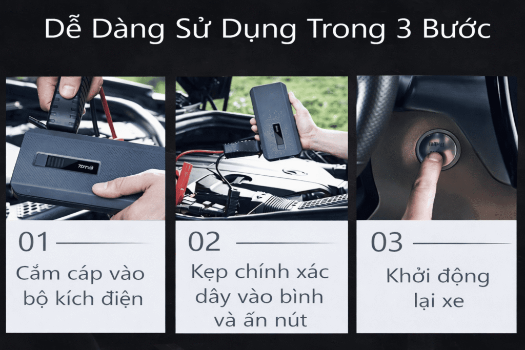 - Thiết bị có thể kích nổ cho các loại xe xăng dưới 8.0L, xe diesel dưới 3.5L. Sau khi kích bình có thể khởi động xe ngay