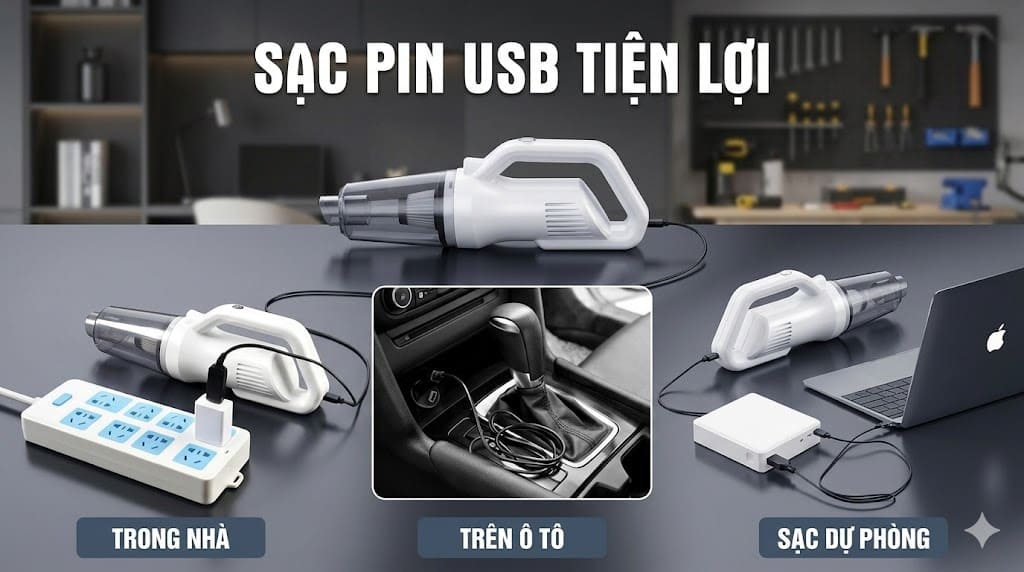- Công suất 120W giúp duy trì lực hút ổn định, không bị yếu đi nhanh chóng như các dòng máy mini giá rẻ khác.