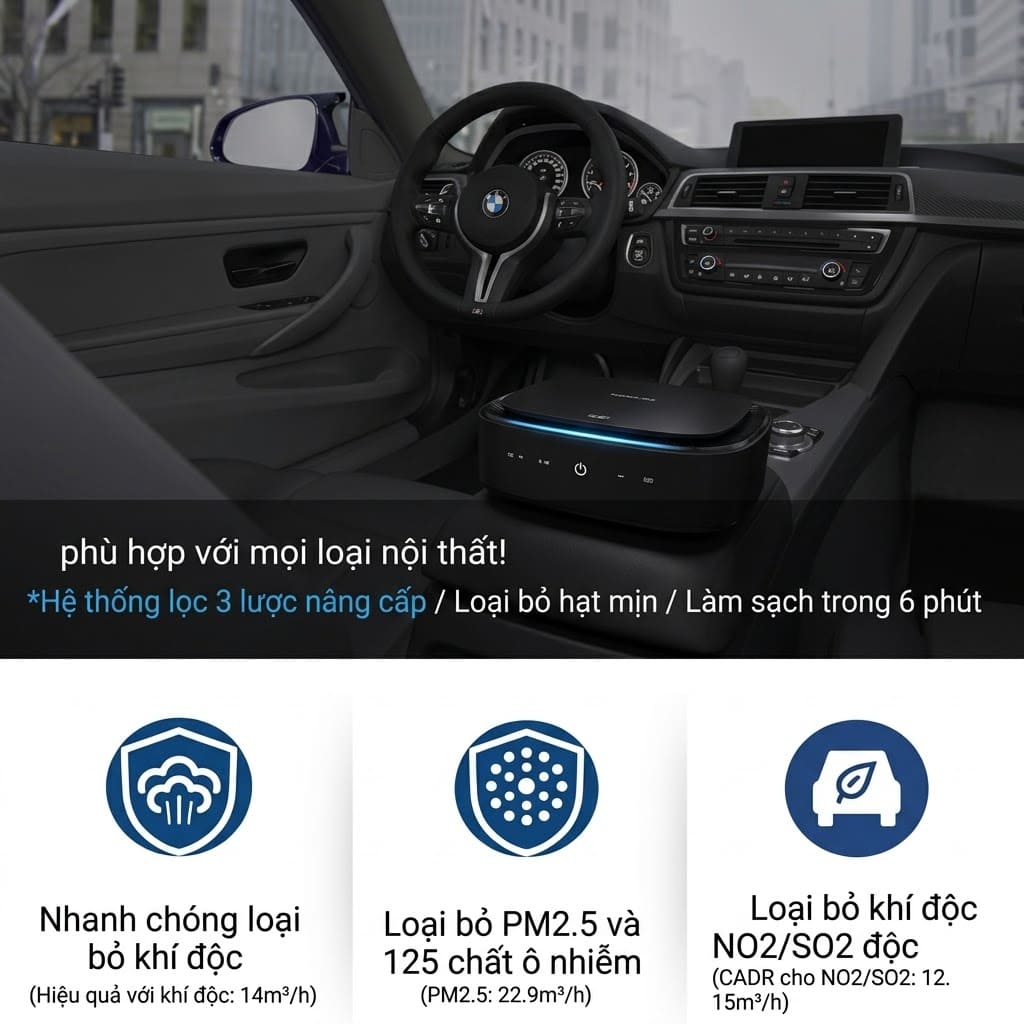 - Nguyên lý: hút – lọc – khử mùi – khử khuẩn – tuần hoàn khí sạch trong cabin